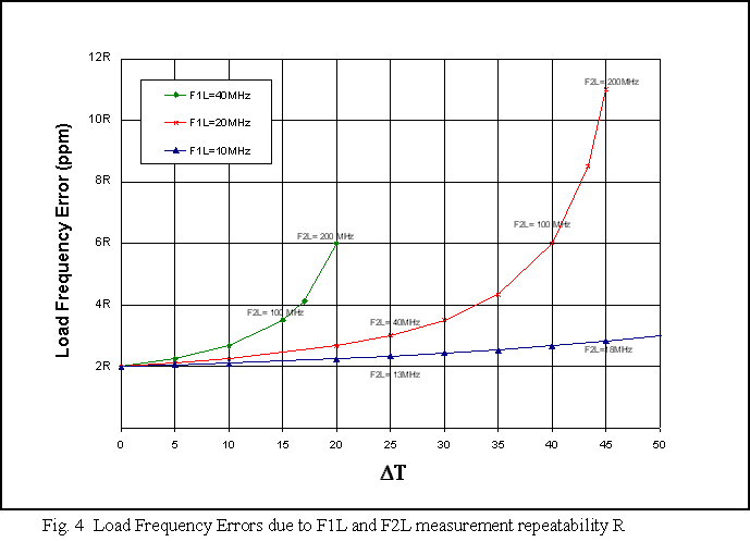 Errors due to Load frequency measurement repeatability. The load frequency error due to the initial load frequency (F1L) measurement repeatability error, R (ppm), is: