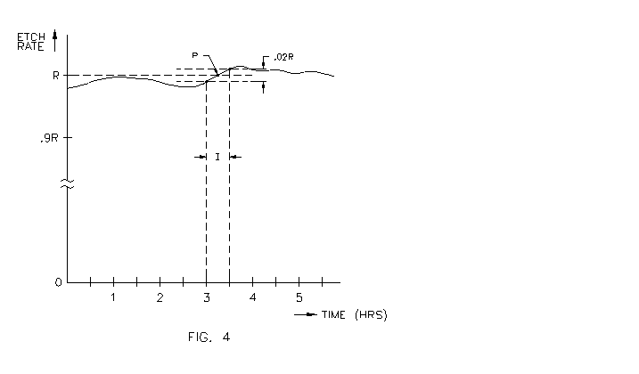 EXAMPLE 2: Fig. 4 shows a hypothetical etch rate plot. Assume you want to determine the between-measurement interval "I" required to measure the rate with an accuracy of 2%. To proceed, assume for now that: